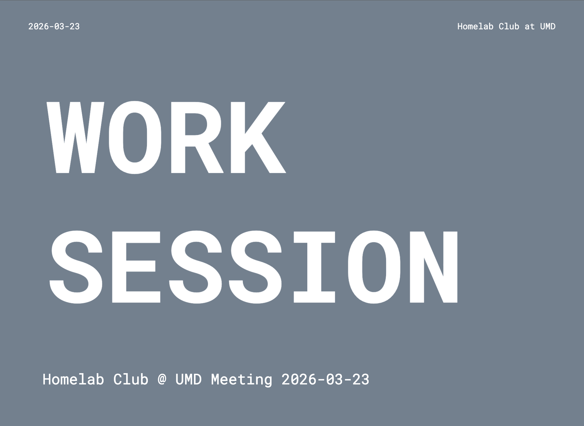 Next Meeting Monday, Mar. 23rd Latest Projects Grafana Pi-hole Django Wireguard Docker & Portainer Self Hosted DNS Nextcloud NGINX (w/ Etherpad) UFW (Firewall) DNSMasq Jekyll: Live Resume Installing Raspberry Pi OS Self Hosted Git